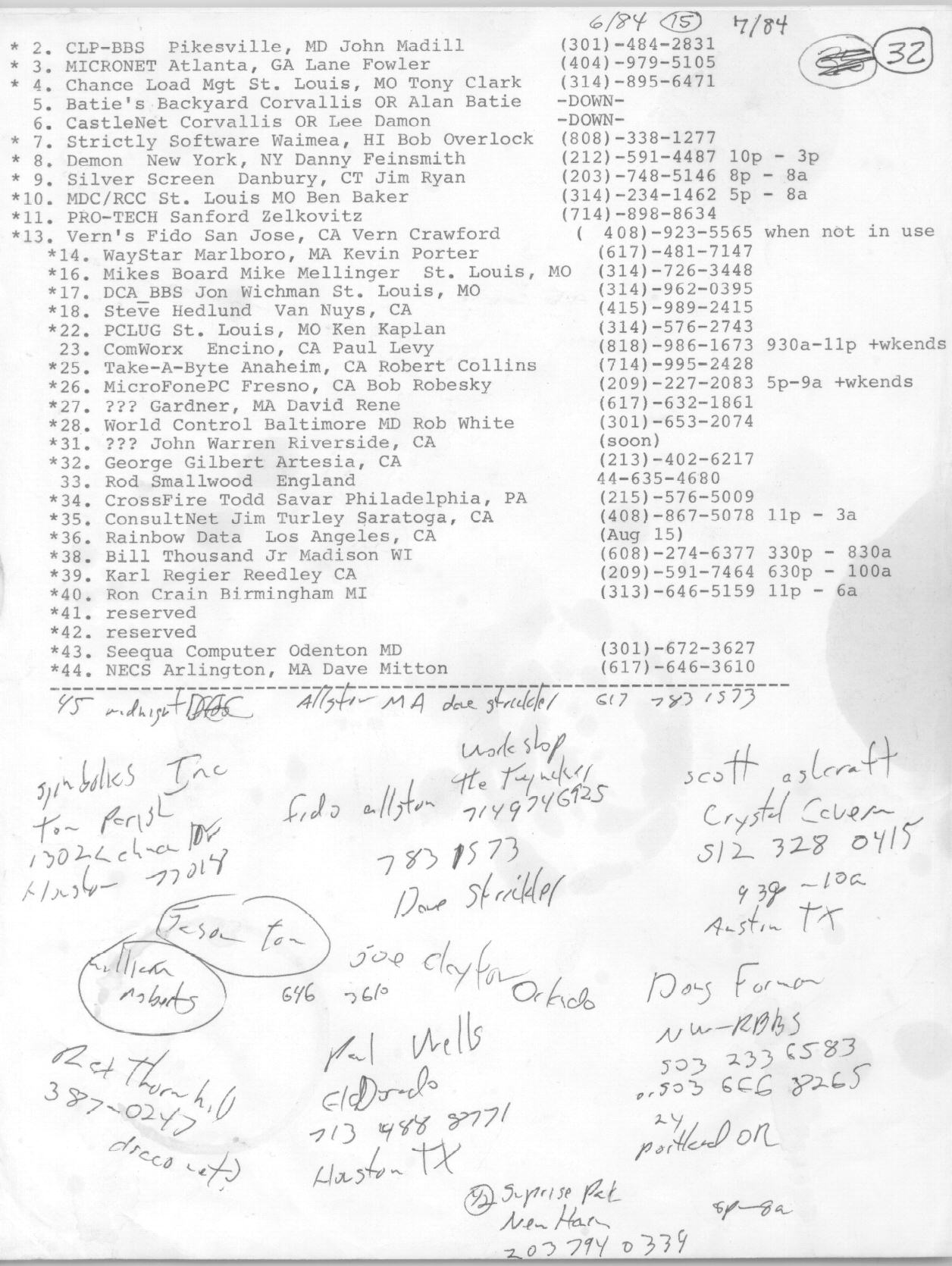 | List of Fido Based Bulletin Board Systems (November 9, 1984) (Page 2)