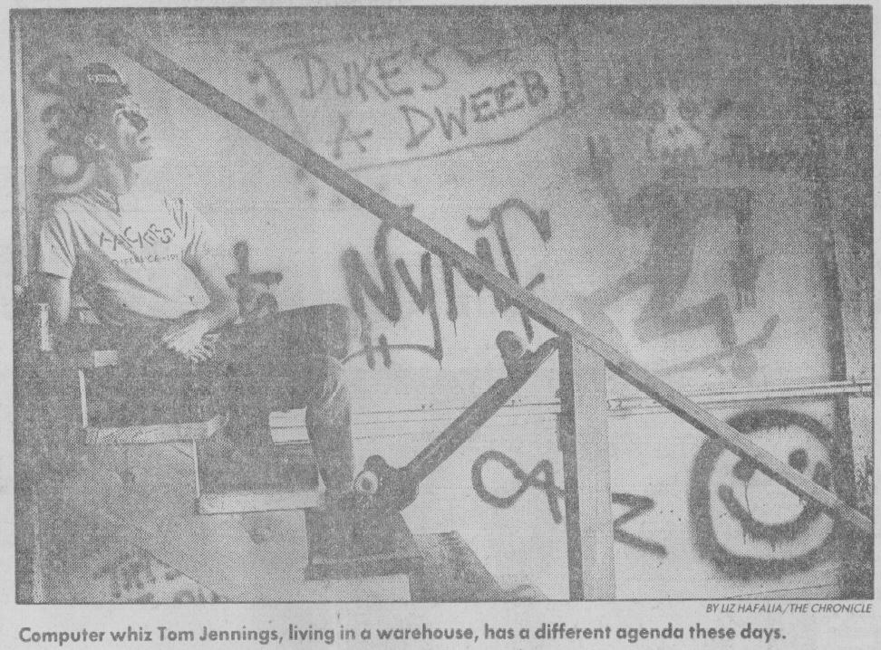 | Cartoon: "Tell Me the Truth, Snoopy: Did Tom Jennings Put You Up to This?" by Ev Cheney (1986)